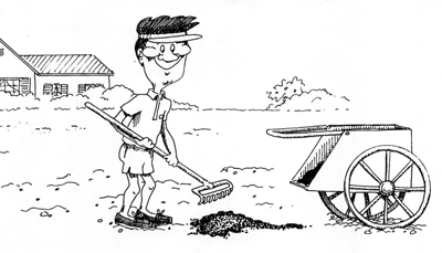 2. Then go back and spread the piles evenly with a rake. You might use a regular garden rake to spread the piles roughly over the lawn, then switch to a flexible leaf rake to spread the materials as evenly as possible.